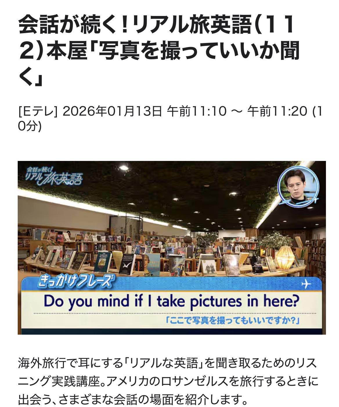 会話が続く! リアル旅英語 26/1/13(火)L112 復習テスト