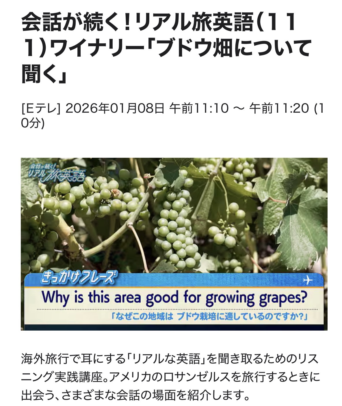 会話が続く! リアル旅英語 26/1/8(木)L111 ブドウ畑について聞く