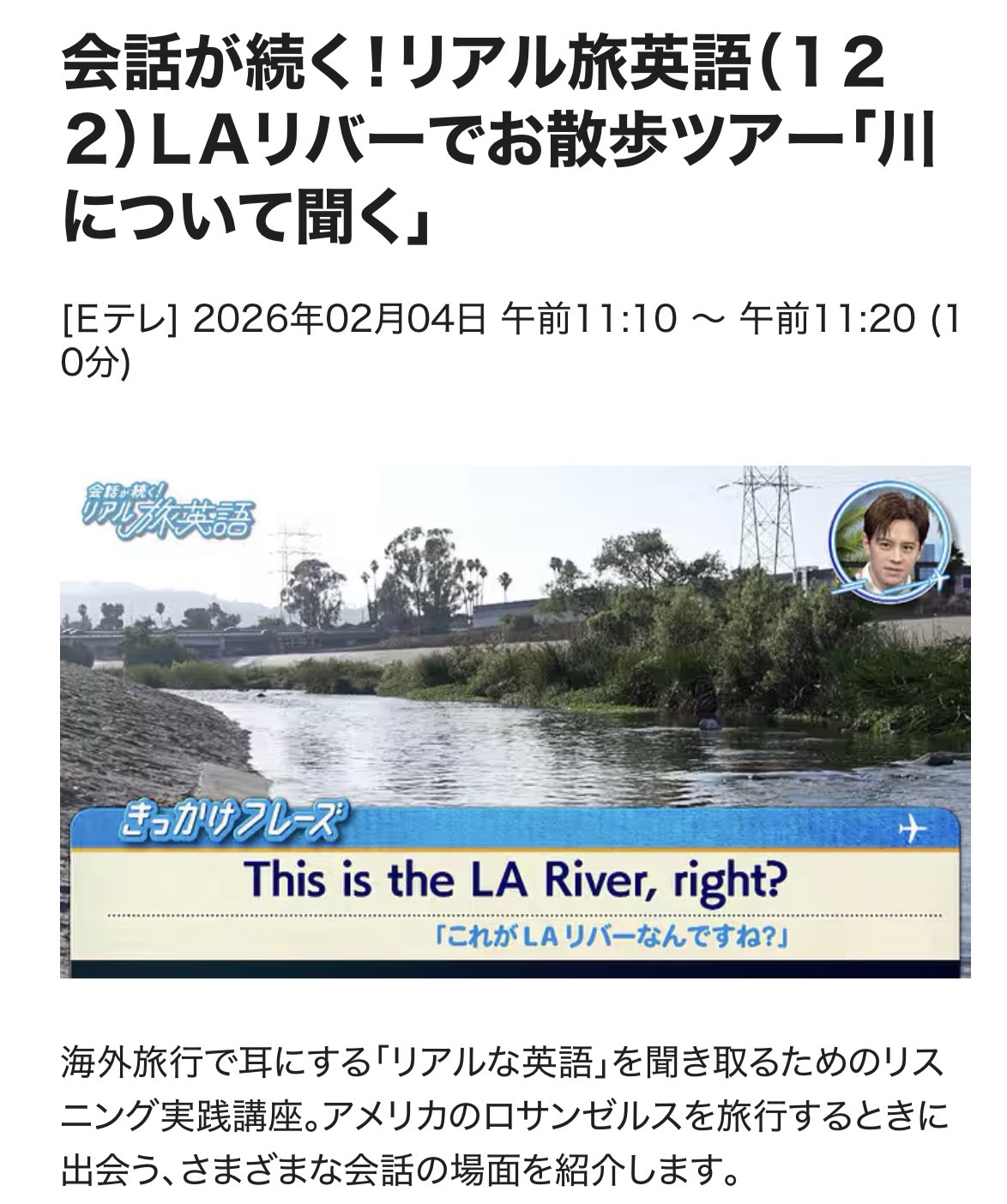 会話が続く! リアル旅英語 26/2/4(水)L122 川について聞く