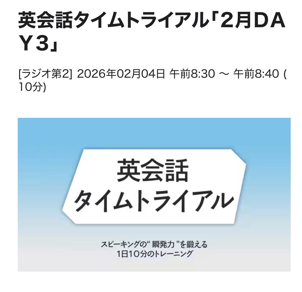英会話 time trial 26/2/4(水)D3復習テスト